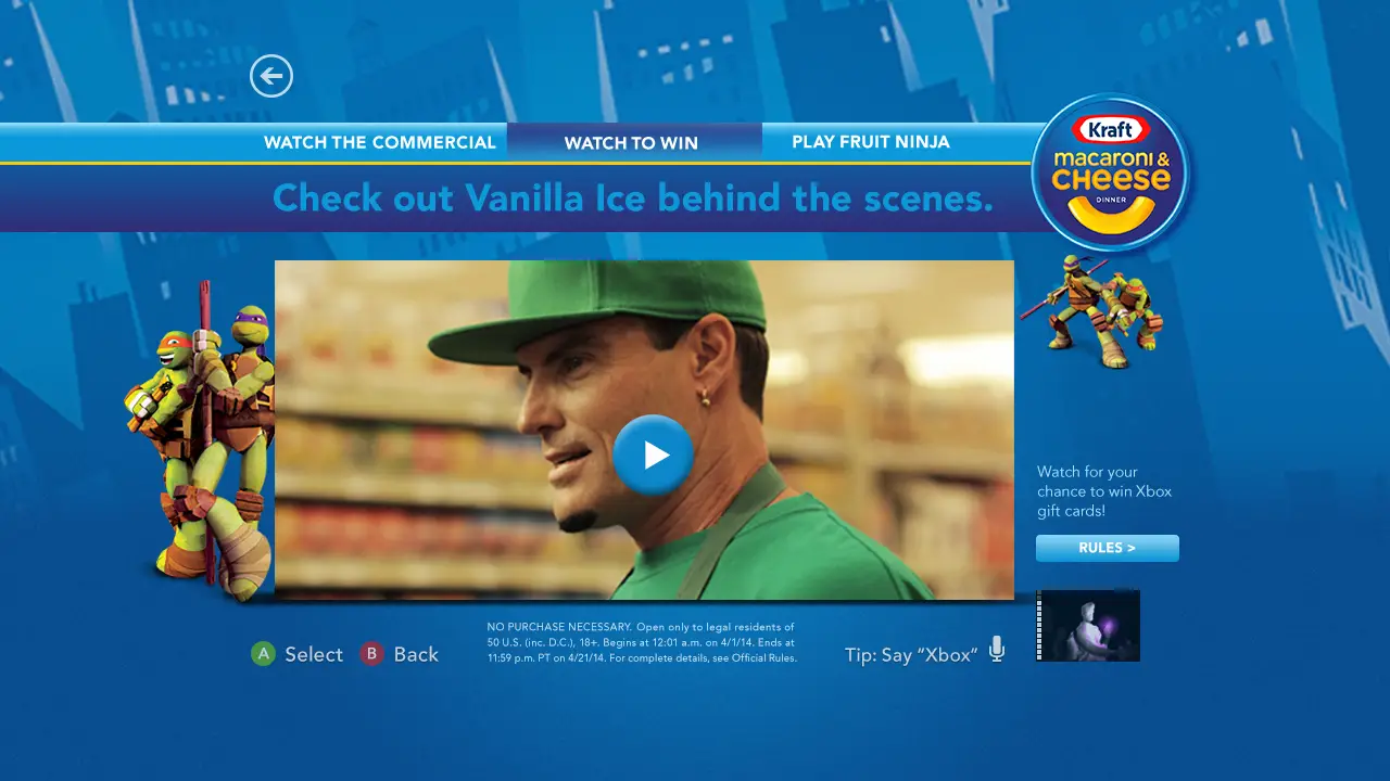 The TMNT Mac & Cheese launch powered onto Xbox with Vanilla Ice, behind-the-scenes extras, Fruit Ninja Kinect gameplay, and the chance to score Xbox gift cards—all in one epic, interactive hub.