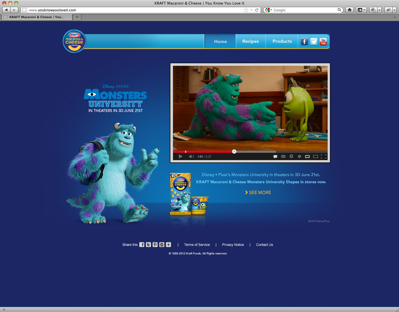 When Monsters Inc. macaroni hit the scene, we cranked up the fun online with a full suite of digital creative. From Facebook covers to animated banners and branded page takeovers, Sulley and Mike popped off the screen—meeting families where they scrolled and stealing the spotlight at dinnertime.