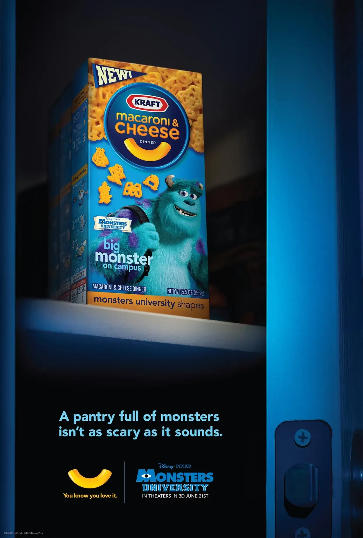 We couldn’t bring Kraft Mac & Cheese Monsters Inc. shapes to life without an epic movie-style poster—starring Sulley as the hero of mealtime and turning a simple box of noodles into a blockbuster moment.